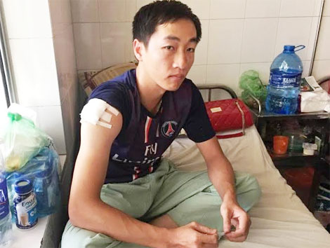 | Trung úy Hà Tuấn Nghĩa tại Bệnh viện Đa khoa Lâm Đồng. |