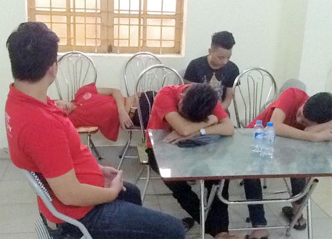 | Các đối tượng bị tạm giữ tại cơ quan Công an. |