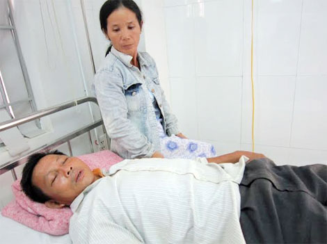 | Ông Ất được vợ chăm sóc tại bệnh viện ĐH Y dược Huế. |