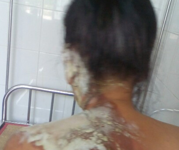 | Bà Lệ bị bỏng nặng và đang điều trị tại bệnh viện. Ảnh CTV |