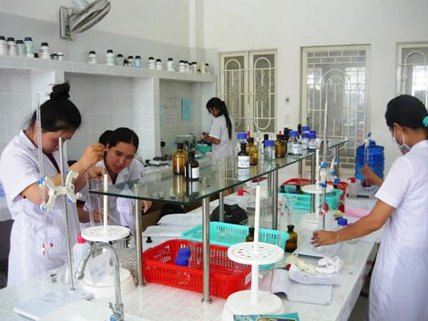 | Sinh viên ngành Dược - trường ĐH Võ Trường Toản trong giờ thực hành. |