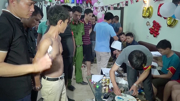 Khoảng 23h ngày 1-8, nhận được tin báo của người dân, tại trang trại của Phạm Văn Hưng (44 tuổi), thôn Lưu Xá, xã Canh Tân, huyện Hưng Hà, tỉnh Thái Bình có nhiều người tụ tập, biểu hiện liên quan đến ma túy.