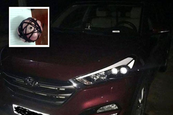 | Chiếc xe ô tô được phát hiện có mìn dưới gầm xe. |