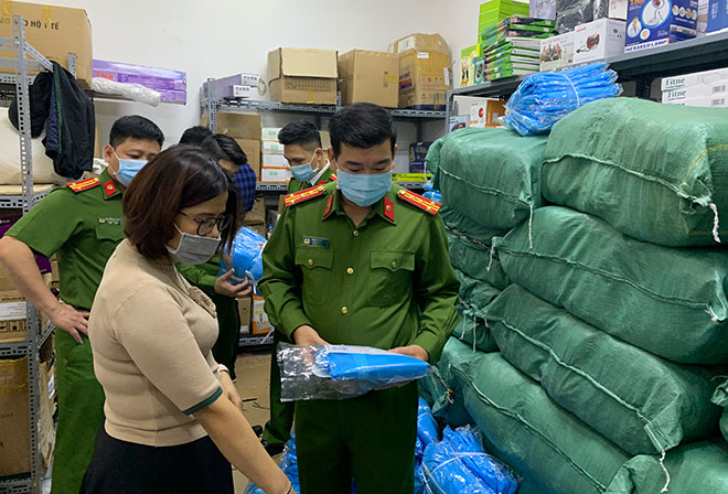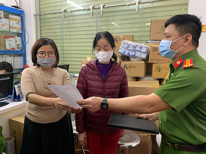 2. Sau khi báo cáo và nhận được sự đồng ý của Trung tướng Đoàn Duy Khương, Giám đốc Công an TP Hà Nội, ngày 8-4, Phòng CSĐT tội phạm về tham nhũng, kinh tế, buôn lậu phối hợp Cục QLTT TP Hà Nội, tiến hành kiểm tra việc chấp hành pháp luật trong kinh doanh vật tư, thiết bị y tế đối với Công ty Đức Anh tại địa điểm kinh doanh số 5 ngõ 178 phố Tây Sơn. Tại thời điểm kiểm tra phát hiện, Công ty Đức Anh đang xuất bán 1.202 bộ trang phục phòng dịch mang các dấu hiệu nghi vấn là hàng giả bộ trang phục phòng dịch của Công ty Phúc Hà.