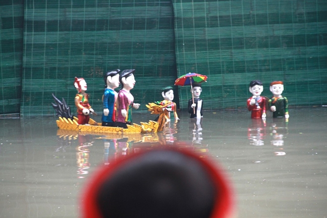 | Trò chơi dân gian rối nước, do Phường rối nước Minh Tân trình diễn trong ngày hội. |