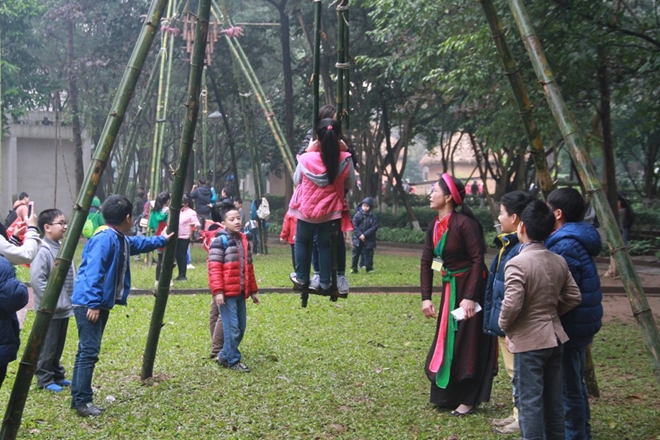 | Trò chơi đánh đu thu hút nhiều em nhỏ, học sinh các trường tiểu học trên địa bàn Hà Nội. |