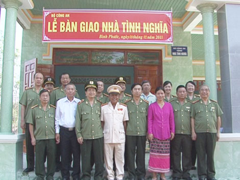 | Thứ trưởng Thường trực Đặng Văn Hiếu cùng Đoàn công tác trao nhà tình nghĩa cho một gia đình chính sách trong lực lượng CAND. |