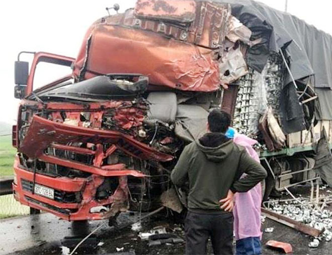 Hậu quả, vụ va chạm đã khiến 2 chiếc xe bị hư hỏng nặng, phần cabin chiếc xe container bị gãy, rơi xuống đường, cabin chiếc xe tải cũng biến dạng hoàn toàn.