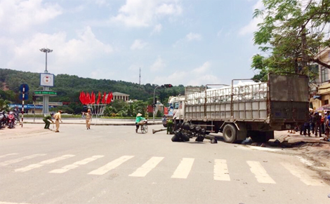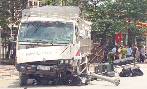 Theo đó, vào thời điểm trên, xe tải chở gạo BKS. 15C-22174, chạy từ hướng Bến Bính về Núi đèo đã bất ngờ lao vào cột đèn tín hiệu giao thông, đâm đổ bốt gác của Cảnh sát giao thông. Nghiêm trọng hơn là chiếc xe này đâm vào một xe máy BKS 15-B2-92967, trên có 2 người rồi cuốn chiếc xe máy vào gầm.