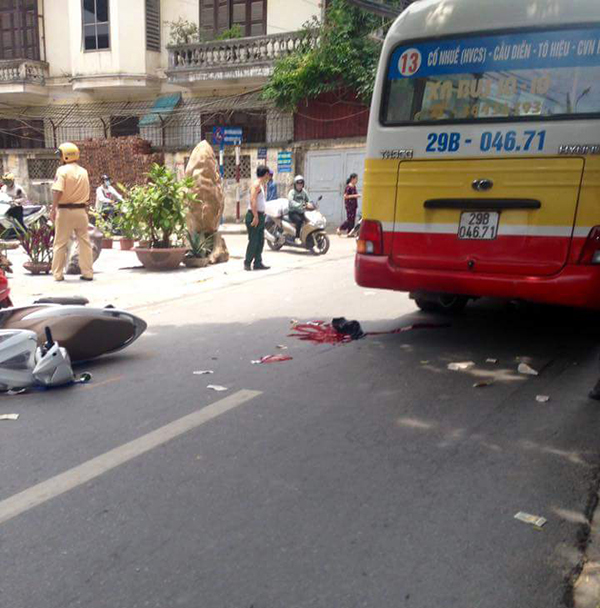 Một nhân chứng ở hiện trường cho biết, vào khoảng thời gian trên, khi đang lưu thông trên đường thì nghe thấy tiếng động rất mạnh. Khi quay ra nhìn thì đã thấy một phụ nữ nằm bất động dưới bánh xe bus, còn chiếc xe máy của nạn nhân bị đổ ở phía sau cách đó vài mét.