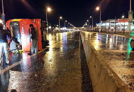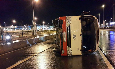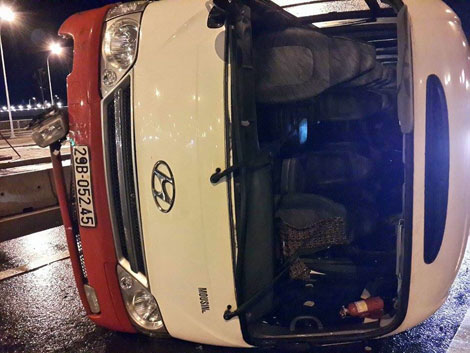 | Chiếc xe bị lật nghiêng. |