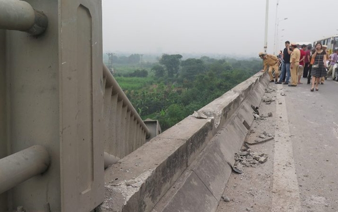 Vào khoảng 8h15 ngày 29/4 trên cầu Vĩnh Tuy, Hà Nội chiếc xe tải chở vật liệu xây dựng mang BKS 29C-187.79 lưu thông trên cầu với tốc độ cao, lạng lách vượt ẩu, không kiểm soát được tốc độ đã bất ngờ tông trúng lan can, khiến hơn 20m lan can rơi xuống chân cầu, chiếc ô tô tải bị hư hỏng nặng.