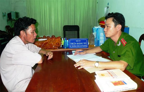 Đại úy Trần Đăng Tú đấu tranh, lấy lời khai tên trộm chuyên nghiệp Cao Hữu Tá.