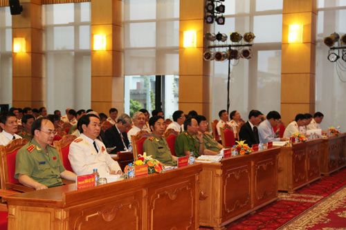 | Đại tướng Trần Đại Quang, Ủy viên Bộ Chính trị, Bí thư Đảng ủy Công an Trung ương, Bộ trưởng Bộ Công an với các đại biểu tham dự Đại hội. |