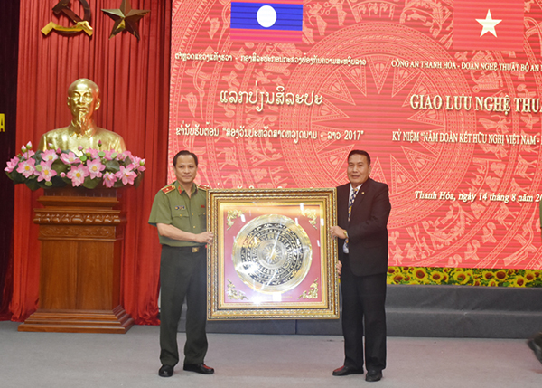 Hưởng ứng các hoạt động hướng tới kỷ niệm “Năm đoàn kết hữu nghị Việt Nam - Lào 2017", tối ngày 14-8, tại Công an Thanh Hóa, Tổng cục Chính trị Công an nhân dân và Công an Thanh Hóa đã phối hợp với đoàn Nghệ thuận của Bộ An ninh Lào tổ chức chương trình giao lưu, biểu diễn nghệ thuật...