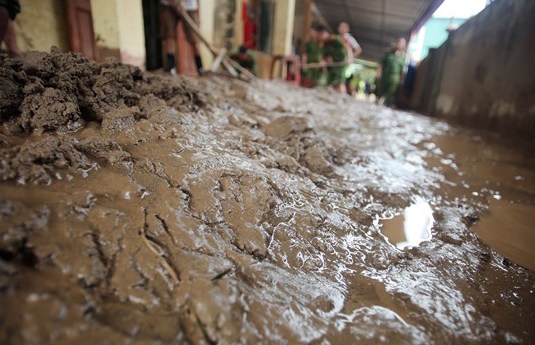 | Những lớp bùn dày đọng lại sau mưa lũ |