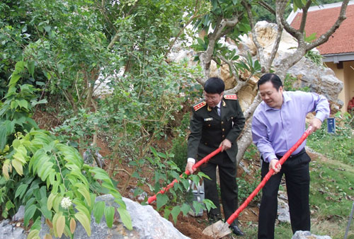 Thứ trưởng Bùi Văn Nam trồng cây lưu niệm tại chùa Phật tích Trúc lâm Bản Giốc.