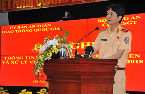 | Thiếu tướng Trần Sơn Hà, Cục trưởng Cục CSGT phát biểu tại buổi làm việc. |