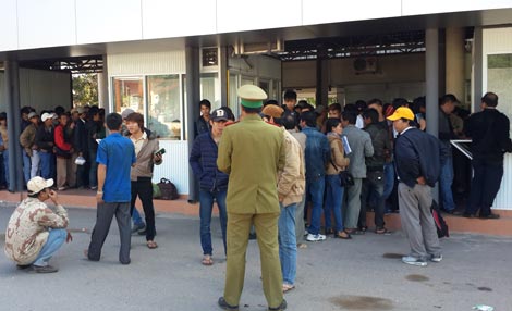 Người dân chen lấn làm thủ tục xuất nhập cảnh trong giờ cao điểm tại cửa khẩu Đensavanh (Lào).
