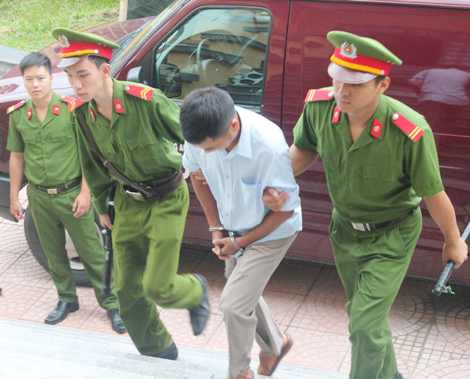 | Bị cáo Vũ được dẫn giải tới tòa án. |