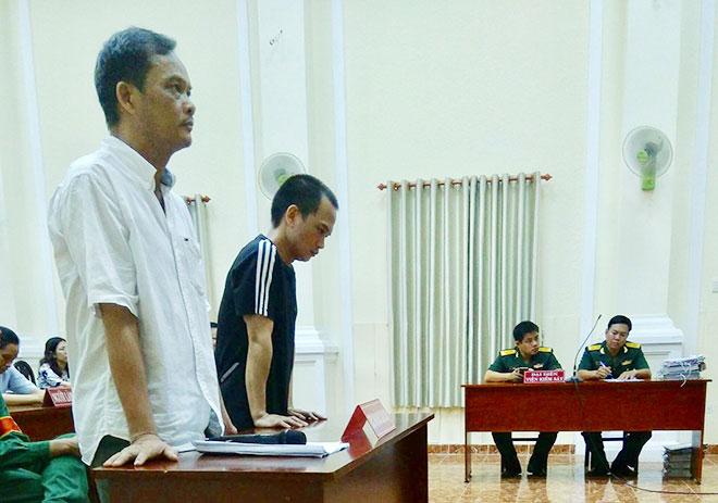 | Hai bị cáo Bình và Sơn bị đưa ra xét xử tại Toà án Quân đội Quân khu 7. |