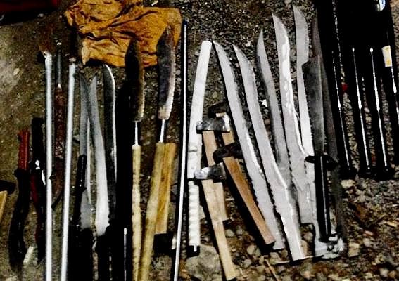 Chiều 15-4, Cơ quan CSĐT Công an thị xã Thuận An (Bình Dương) đã mời 9 đối tượng về trụ sở làm việc để điều tra làm rõ số hung khí tại bãi giữ xe thuộc quán karaoke thuộc khu phố Hoà Lân, phường Thuận Giao, thị xã Thuận An.