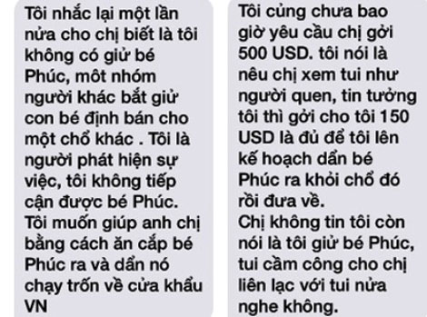 Mặt khác, anh Hạnh (cha cháu Phút) đã từng cho biết, trong thời gian cháu Phút mất tích, anh phải bỏ công việc, vay mượn tiền đi tìm cháu. Cũng trong thời gian này, anh Hạnh nhận được nhiều tin nhắn, trong đó có tin nhắn đòi 5.000USD tiền chuộc cháu sau đó giảm xuống 500USD, 300USD và 150USD. Trong thời gian này tại sao những tin nhắn trên anh Hạnh không cung cấp hợp tác với CQĐT để làm rõ.