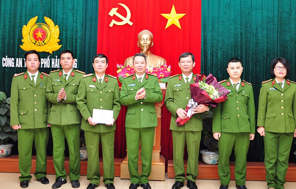 | Đại diện lãnh đạo Công an TP Hải Phòng biểu dương thành tích của Phòng Cảnh sát kinh tế |