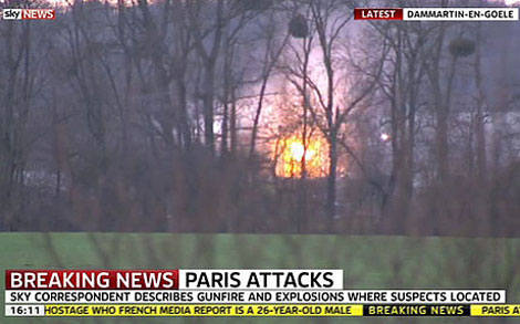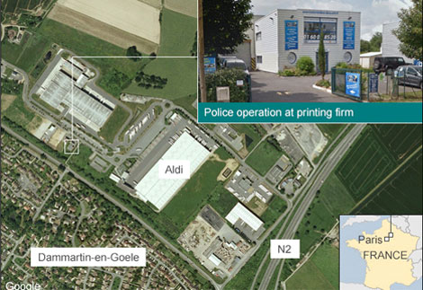 * Trong khi đó, Reuters dẫn nguồn tin từ Văn phòng Công tố viên Paris bác bỏ báo cáo trên. 5 trực thăng đang quần thảo phía trên một khu công nghiệp bên ngoài thị trấn Dammartin-en-Goele. Bộ trưởng Bộ nội vụ Pháp khẳng định lực lượng an ninh đang có hoạt động tại khu vực này.