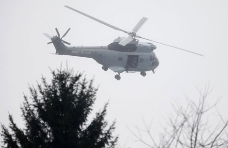 | Trực thăng của Không quân Pháp xuất hiện trên bầu trời thị trấn Dammartin-en-Goele. Nguồn: Reuters. |