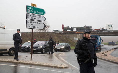 | Một lượng lớn nhân viên an ninh được triển khai tại Dammartin-en-Goele. Ảnh: AP |
