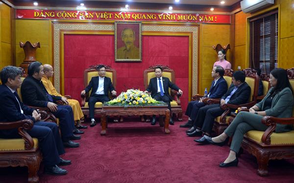| Đồng chí Đỗ Đức Duy - Bí thư Tỉnh ủy tiếp đoàn đại biểu đại diện chức sắc, chức việc, các tín đồ Công giáo, Phật giáo trên địa bàn tỉnh đến chúc mừng thành công Đại hội Đảng bộ tỉnh lần thứ XIX. |