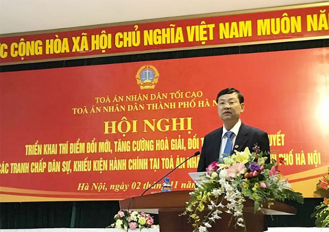 Phát biểu tại hội nghị, Chánh án TAND TP Hà Nội Nguyễn Hữu Chính cho biết, việc ra đời các Trung tâm hoà giải, đối thoại ở 16 đơn vị thuộc TAND hai cấp TP Hà Nội là cơ sở thực tiễn để xây dựng Luật Hoà giải, đối thoại tại Toà án, giúp giảm tải công tác xét xử của Toà án trong bối cảnh số lượng biên chế của Toà án còn hạn chế, trong khi số lượng các vụ tranh chấp dân sự, khiếu kiện hành chính ngày càng tăng, tính chất các vụ việc ngày càng phức tạp.
