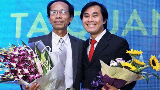 PGS Nguyễn Sum (trái) và GS Phan Thanh Sơn Nam trong lễ trao giải thưởng Tạ Quang Bửu. Ảnh: Thanh niên.
