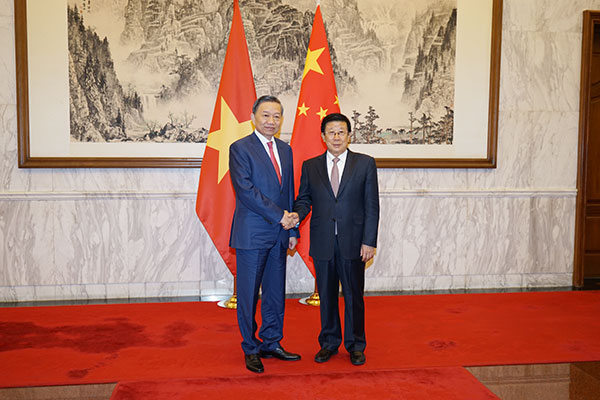 | Bộ trưởng Tô Lâm và Bộ trưởng Bộ Công an Trung Quốc Triệu Khắc Chí |