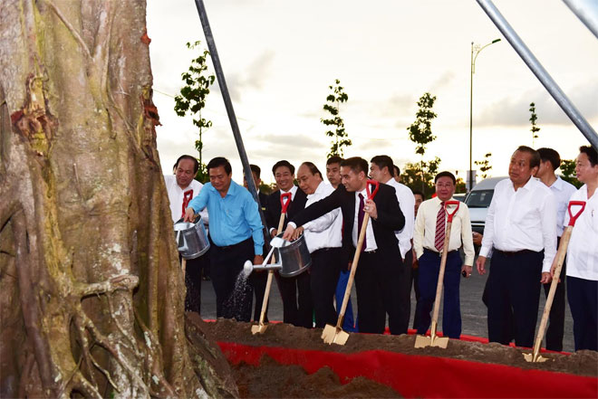 | Thủ tướng Nguyễn Xuân Phúc trồng cây lưu niệm tại Thành phố Sinh thái Năm Sao. |