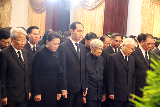 Đoàn đại biểu Ban Chấp hành Trung ương Đảng Cộng sản Việt Nam do đồng chí Tổng Bí thư Nguyễn Phú Trọng dẫn đầu cùng các đồng chí lãnh đạo, nguyên lãnh đạo Đảng, Nhà nước viếng cố Thủ tướng Chính phủ Phan Văn Khải.