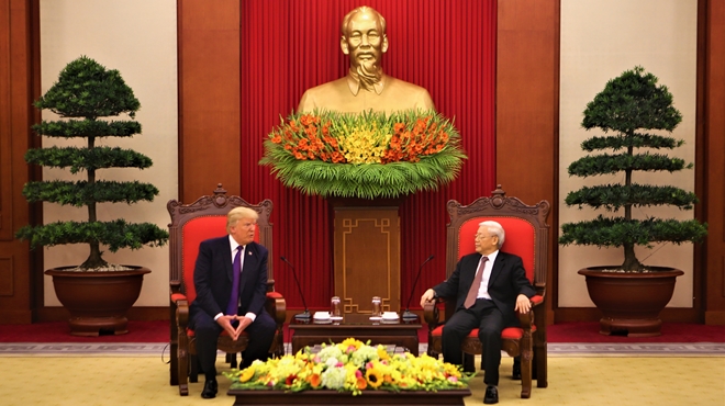 | Tổng Bí thư (hiện là Tổng Bí thư, Chủ tịch nước) Nguyễn Phú Trọng hội kiến Tổng thống Trump hồi 2017. |