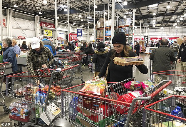 Nhiều người Mỹ đổ xô tới các siêu thị xếp hàng dài mua đồ dự trữ khi dịch viêm đường hô hấp cấp do virus Corona chủng mới (COVID-19) lan rộng.