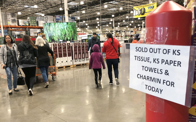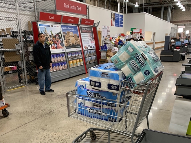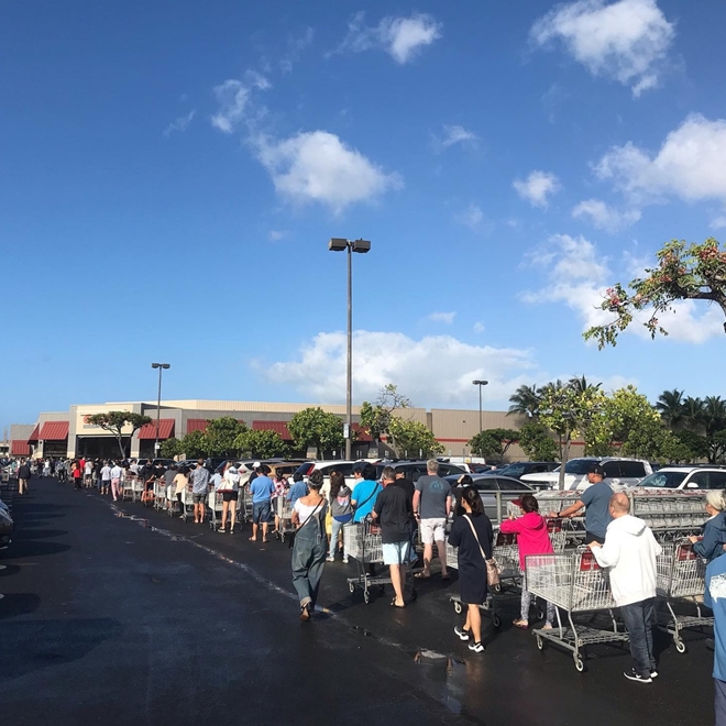| Duane Tanouye, một người xếp hàng, nói có đến 200 người giống ông khi phải chờ đợi hàng giờ đồng hồ để đến lượt vào trong. Mỗi khách hàng chỉ được mua những sản phẩm thiết yếu như giấy vệ sinh với số lượng nhất định, song nhiều người vẫn lấy quá quy định. |