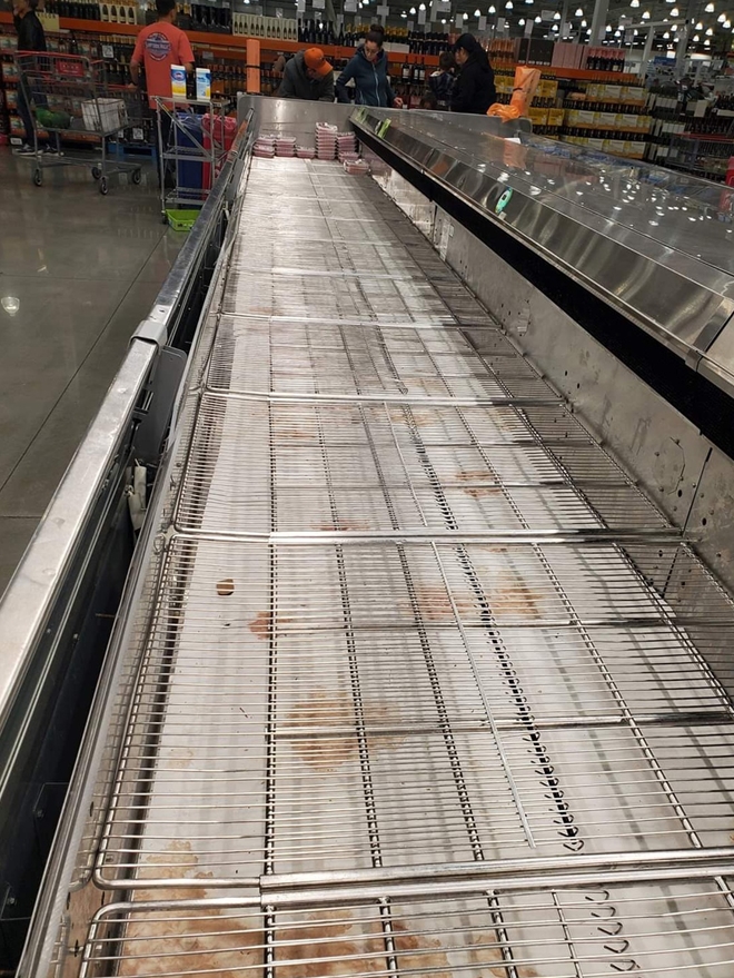 Một quầy bán thịt tươi được vét sạch không lâu sau khi siêu thị mở cửa ở Mỹ. Bất chấp tình hình có phần căng thẳng, Phó tổng thống Mỹ Mike Pence nhấn mạnh nguy cơ từ COVID-19 đối với người dân Mỹ vẫn ở mức thấp và các loại thuốc điều trị sẽ sớm được lưu hành.