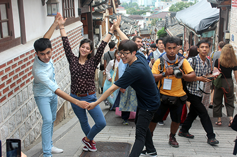 | Làng Bukchon Hanok đã trở thành địa điểm tham quan nổi tiếng thu hút du khách trong và ngoài nước đến tham quan, nhất là các bạn trẻ. ảnh: Thu Phương |