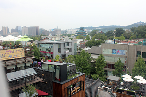 | Những quán cà phê trên nóc nhà ở ngôi làng Bukchon Hanok. ảnh: Thu Phương |