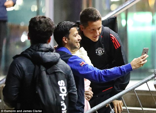 | Ander Herrera tranh thủ chụp ảnh "tự sướng" cùng đồng đội. |