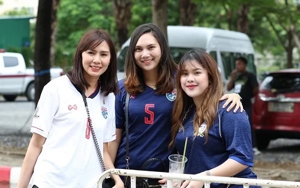 | Các CĐV nữ Thái Lan xếp hàng chờ vào sân. Ảnh: VNE. |