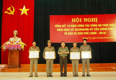 Ngày 14-10, Công an tỉnh Quảng Trị đã tổ chức Hội nghị tổng kết 10 năm công tác Công an thực hiện Nghị định số 38/2006/NĐ-CP của Chính phủ về bảo vệ dân phố (2006-2016).