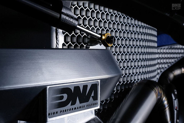 | DNA đã nâng cấp hiệu suất của khối động cơ Boxer 2 xi-lanh trên DCR-018 Billet Sting. Hoàn toàn không động tới kết cấu bên trong, hai cha con Nikolaidis đã có thể khiến động cơ này tạo ra công suất tối đa lên tới 122 mã lực, đo ở bánh sau trên bàn dyno. Mức tăng công suất vượt trội này có được nhờ vào hệ thống cổ nạp phi thường được thiết kế riêng. |