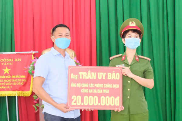 | Trao tặng 20 triệu đồng ủng hộ phòng, chống dịch cho Công an xã Đắk Wer. |