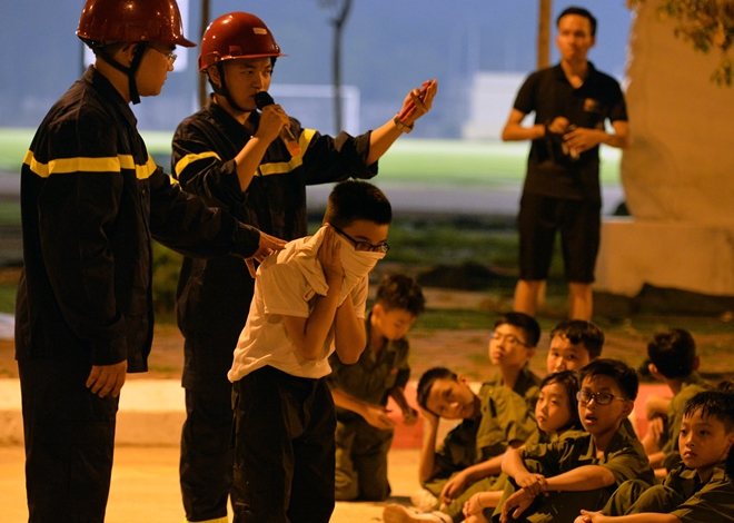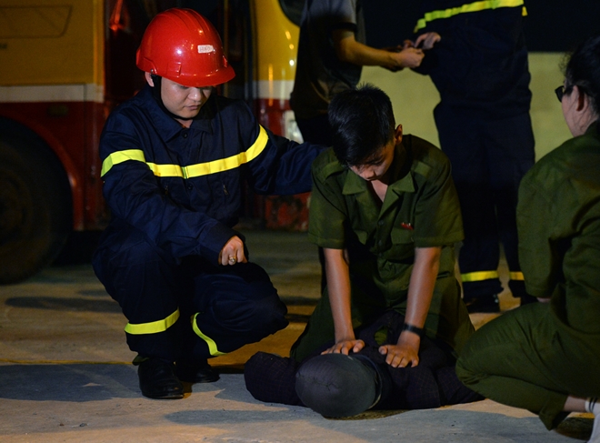 Sau bữa cơm tập thể buổi chiều tối tại nhà ăn, 130 học viên được tập trung tại sân học viện cảnh sát nhân dân để thực hành buổi học về PCCC & CHCN.