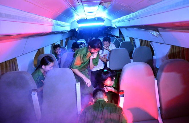 Được trải nghiệm như những chiến sĩ PCCC & CHCN chuyên nghiệp, các giảng viên đã chuẩn bị bài thực hành cho các em với mô hình máy bay, xe buýt thật...